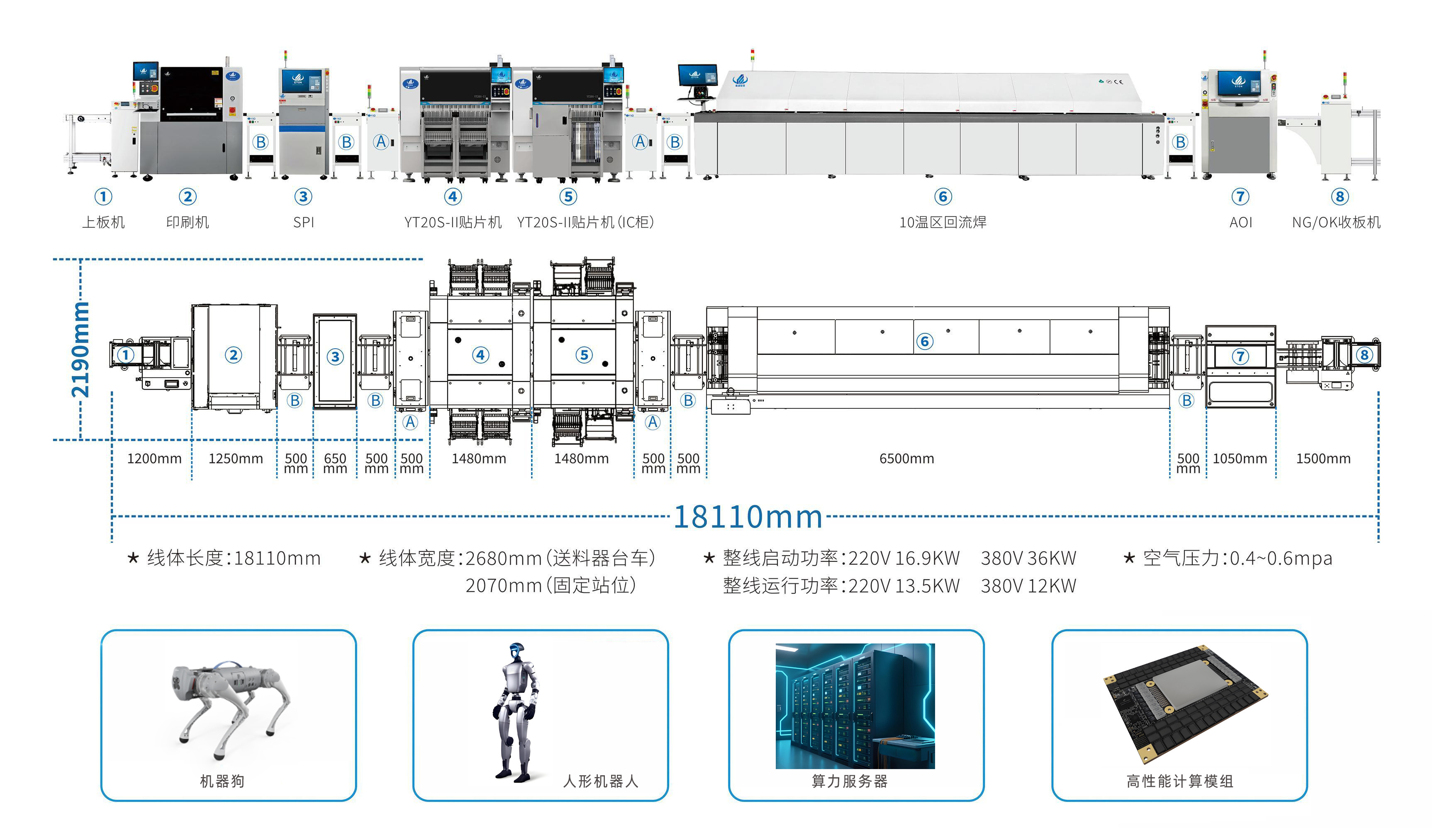 中国易通贴片机助力人工智能领域发展, 为人形机器人,机械狗,AI服务器核心板卡、GPU/TPU等高性能计算模组及